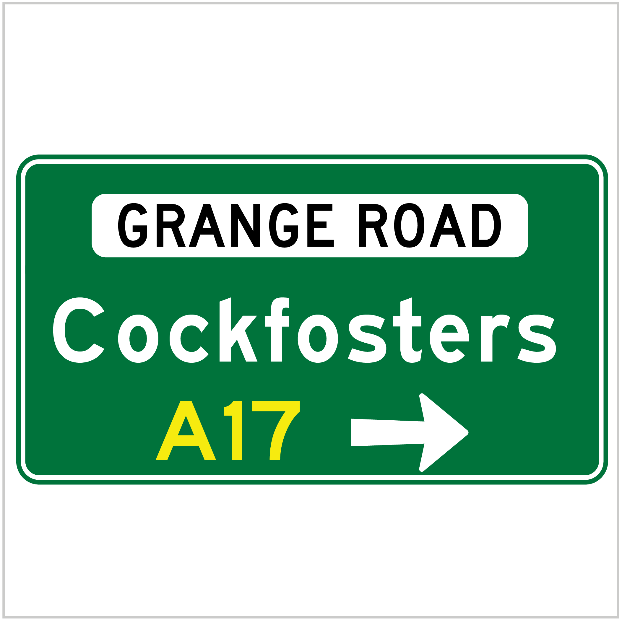 A white legend on a green background is used for signs such as advance direction signs, finger boards, intersection and special direction signs, advance exit and exit direction signs on freeways, reassurance direction signs and kilometre posts.